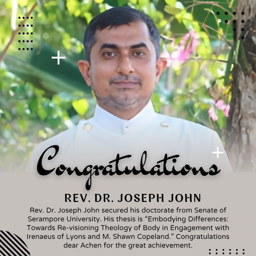 We are overjoyed to share the wonderful news that our esteemed Vicar has been honored with a doctorate by the Senate of Serampore University. This prestigious recognition is a testament to their dedication, scholarship, and unwavering service. His doctoral thesis, "Embodying Differences: Towards Re-visioning Theology of Body in Engagement with Irenaeus of Lyons and M. Shawn Copeland,". We extend our heartfelt congratulations and best wishes for continued success in their mission and ministry.