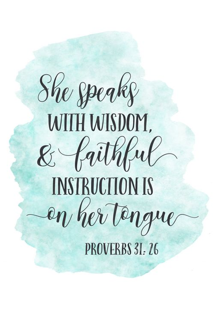 'She Opens Her Hand To The Poor And Reaches Out Her Hands To The Needy. She Opens Her Mouth With Wisdom, And The Teaching Of Kindness Is On Her Tongue.'Proverbs 31: 21& 26